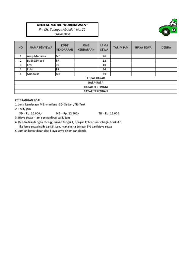 Kemudian, silakan anda berlatih membuat tugas seperti sheet ….